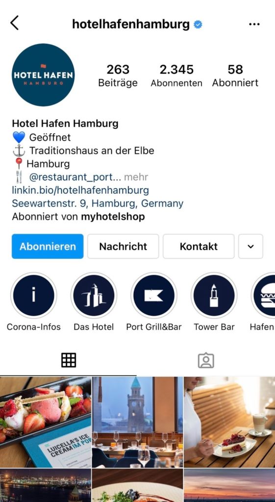 Example of an expressive Instagram profile of our client Hotel Hafen Hamburg